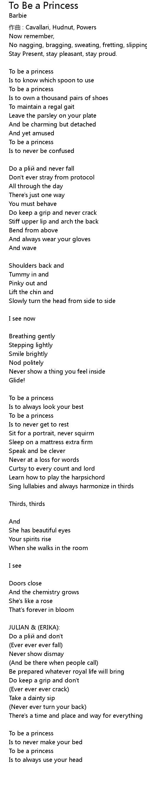 | 歌曲 | To Be a Princess |