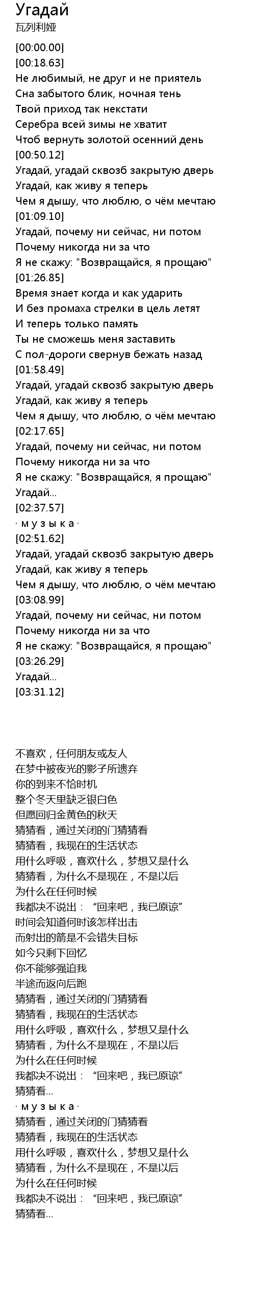 | [00:58.75] | Угадай, как живу я теперь |