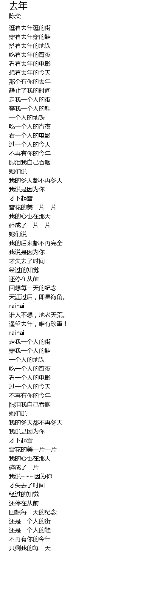 | [00:30.75] | nà gè yǒu nǐ de qù nián |