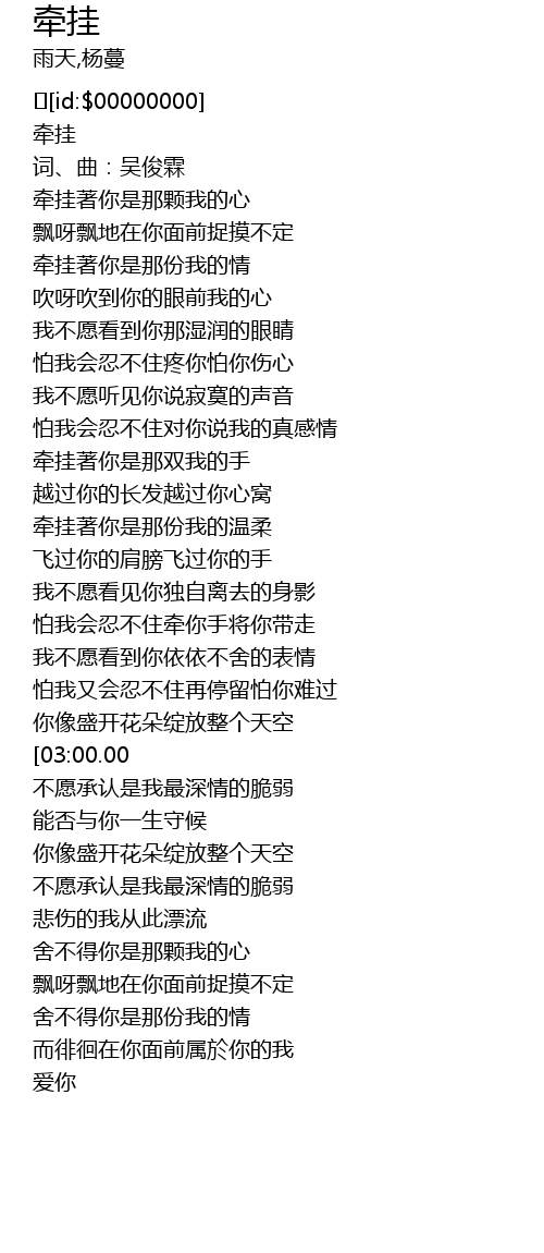 | [00:00.0] | 牵挂 |