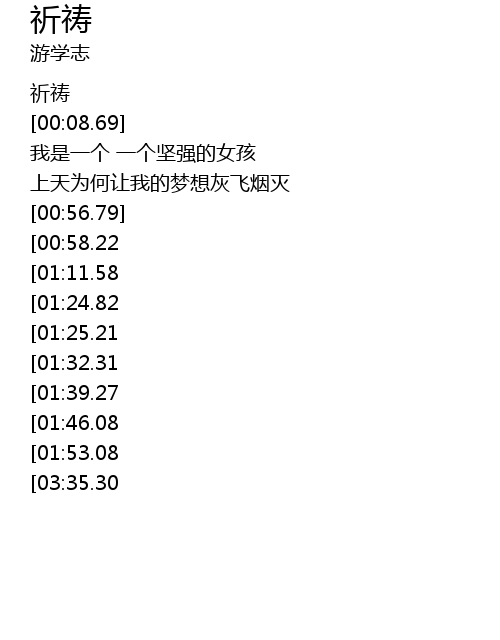 | [02:31.32][00:58.22] | 我是一个 一个坚强的女孩 |