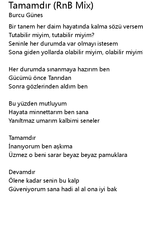 | 歌曲 | Tamamdır (RnB Mix) |