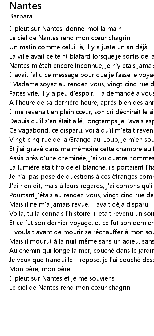 | Le ciel de Nantes rend mon c ur chagrin | |