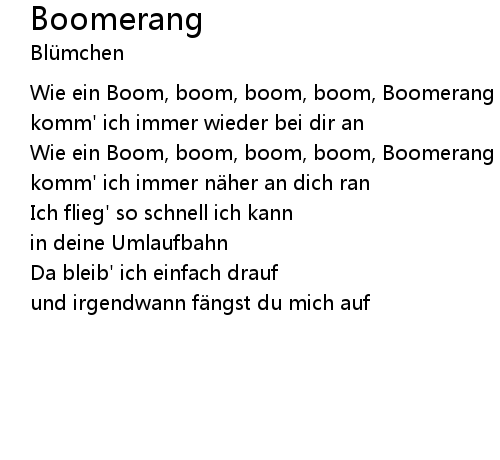| Wie ein Boom, boom, boom, boom, Boomerang | |