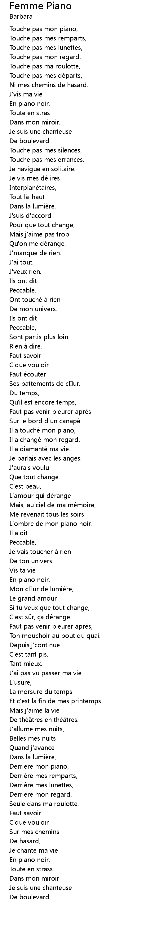 | Il a touche mon piano, | |