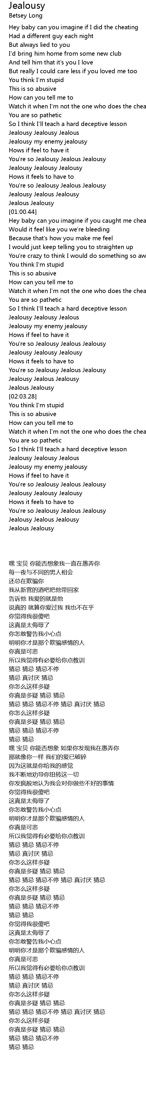 Jealousy Jealous Jealousy |