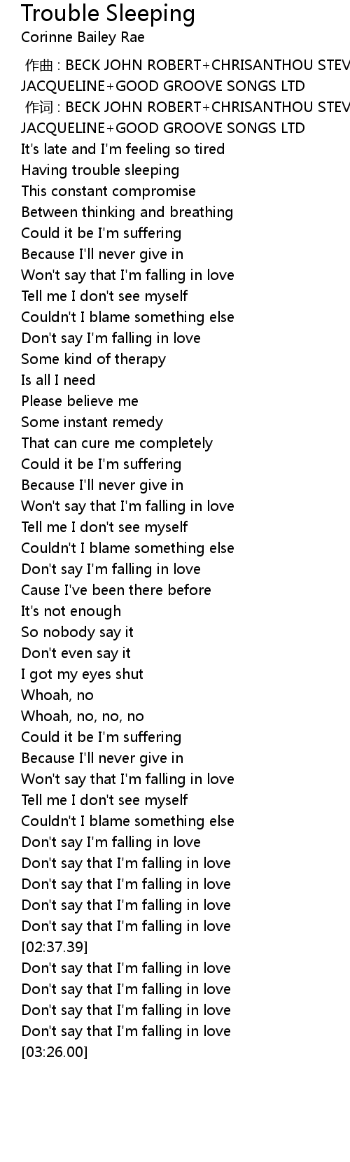 | [00:09.53] | Having trouble sleeping |