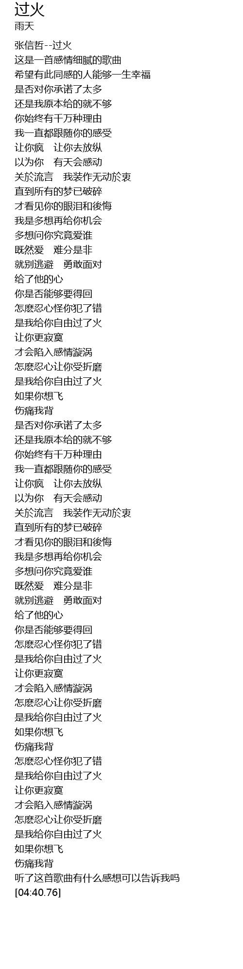 | [00:00.00] | zhāng xìn zhé guò huǒ |