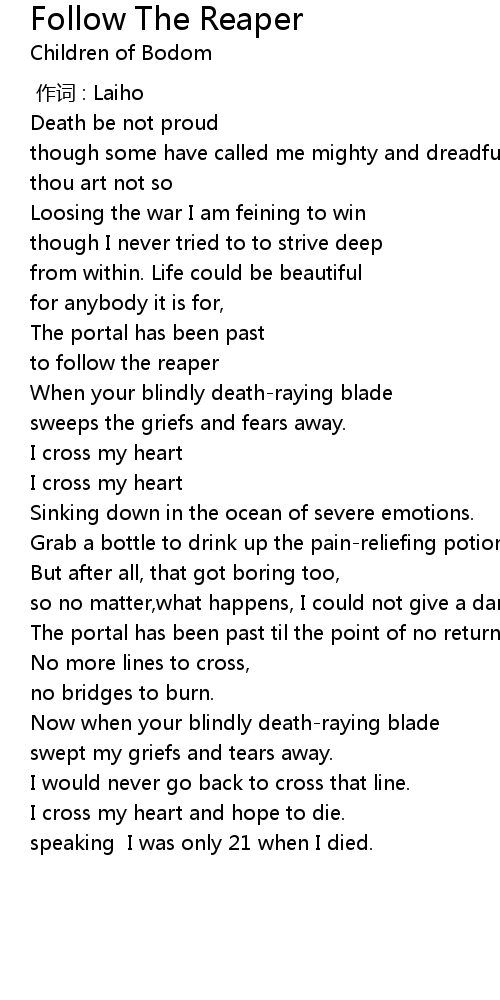 | [01:05.68] | to follow the reaper |
