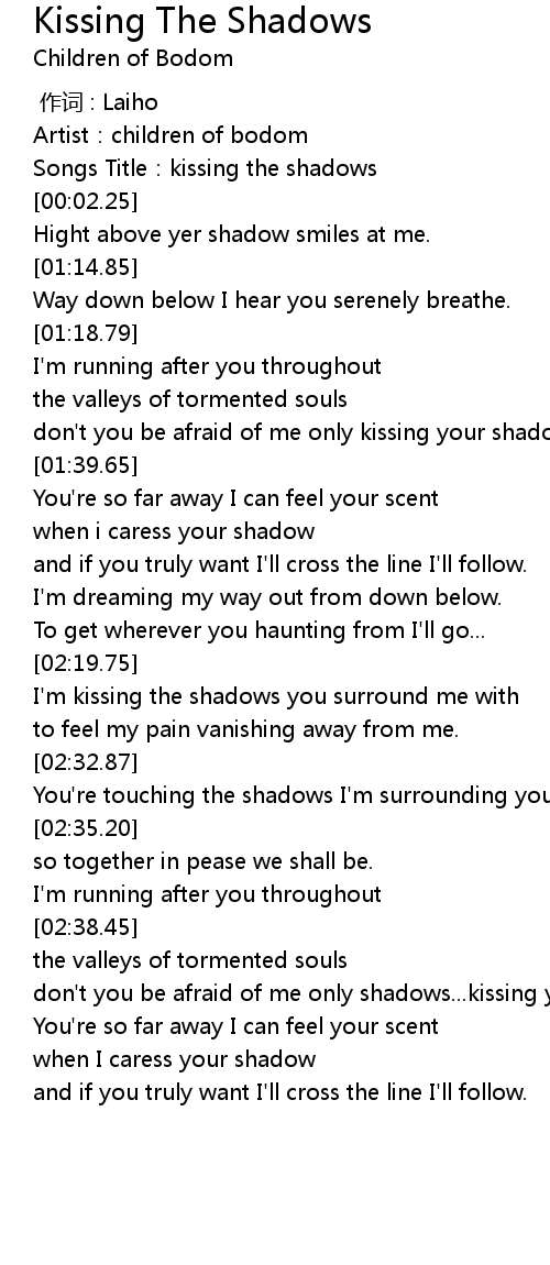 | [00:01.41] | Songs Title: kissing the shadows |