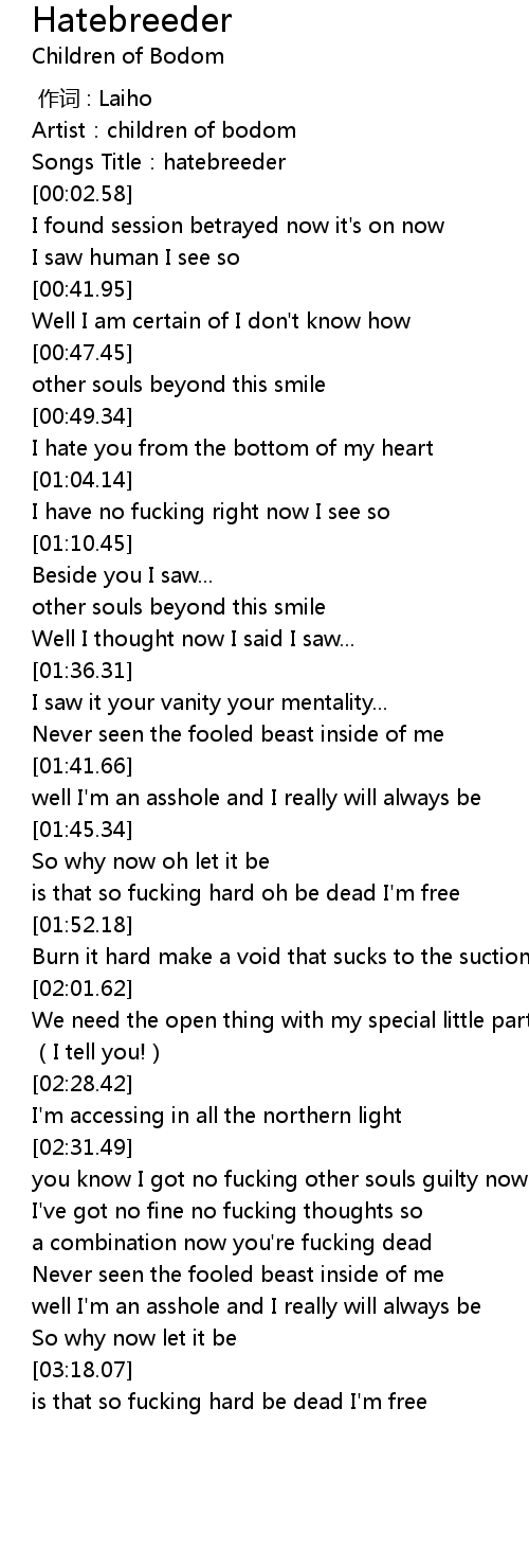 | [00:01.53] | Songs Title:hatebreeder |