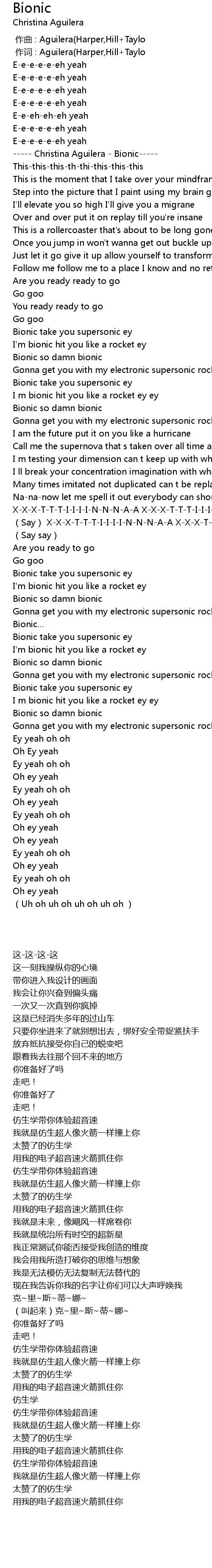| [00:06.88] | ----- Christina Aguilera - Bionic----- |