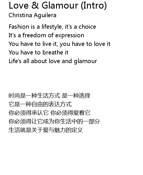 | [00:00.38] | Fashion is a lifestyle, it's a choice |