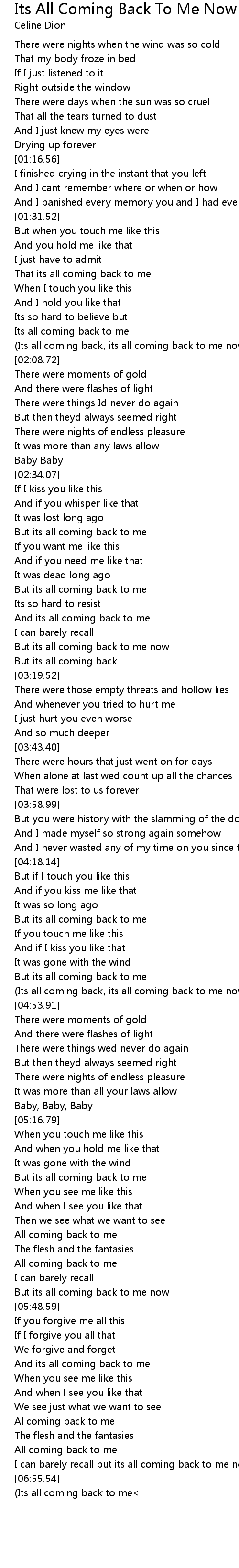 And its all coming back to me |