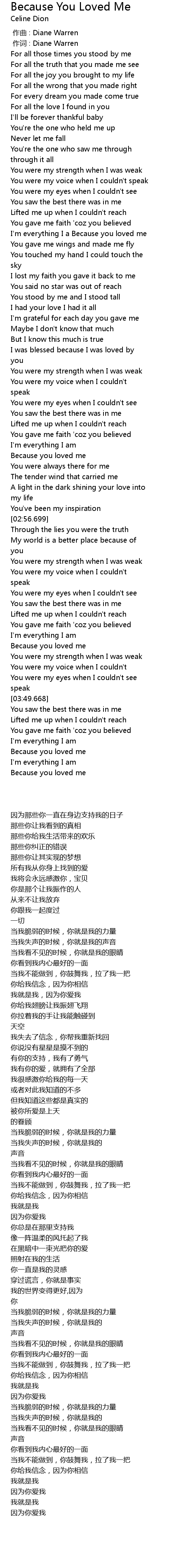 | [02:33.299] | Because you loved me |