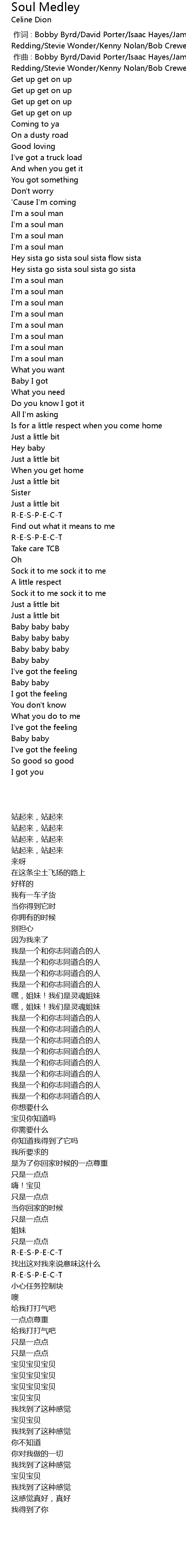 | [00:01.000] | 作曲 : Bobby Byrd/David Porter/Isaac Hayes/James Brown/Otis Redding/Stevie Wonder/Kenny Nolan/Bob Crewe/Ron Lenhoff |