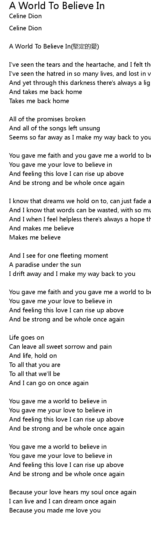 | You gave me a world to believe in | |