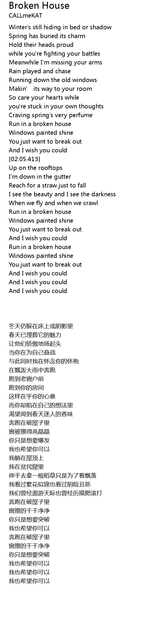 | [04:00.432] | Run in a broken house |