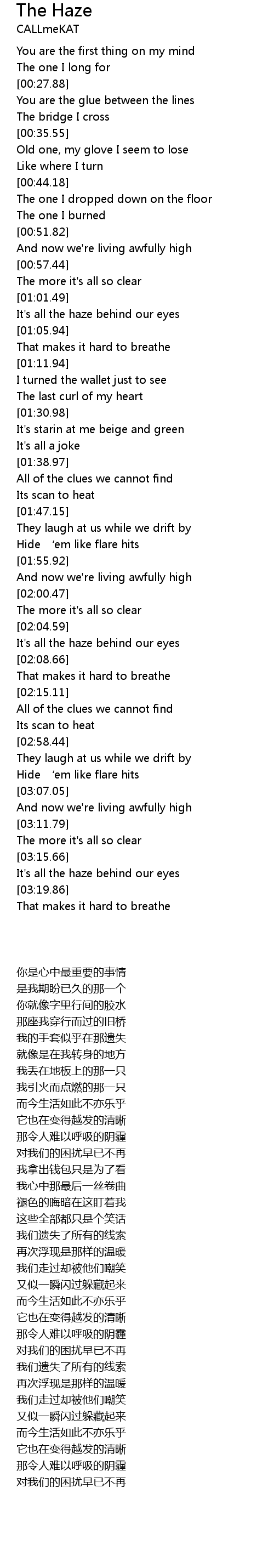 | 歌曲 | The Haze |
