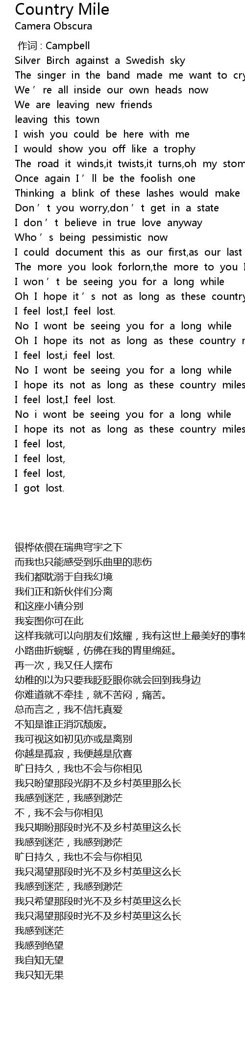 | [02:51.739] | 我只希望那段时光不及乡村英里这么长 |