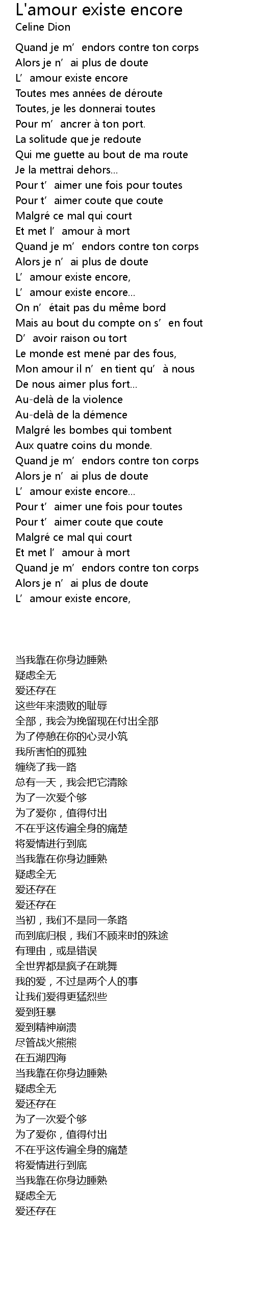 | 歌曲 | L'amour existe encore |