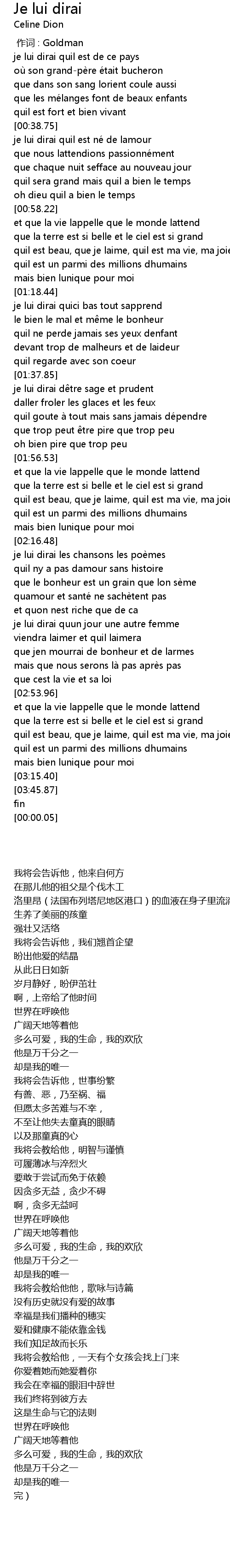 | [00:40.35] | je lui dirai quil est ne de lamour |