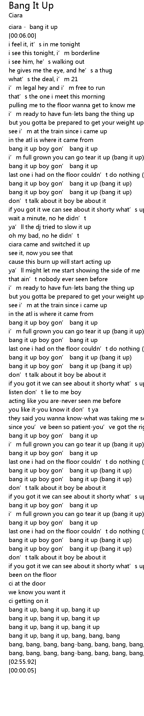 | [02:38.70] | bang it up, bang it up, bang it up |
