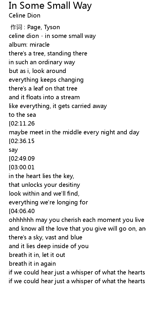 | [00:00.00] | celine dion in some small way |