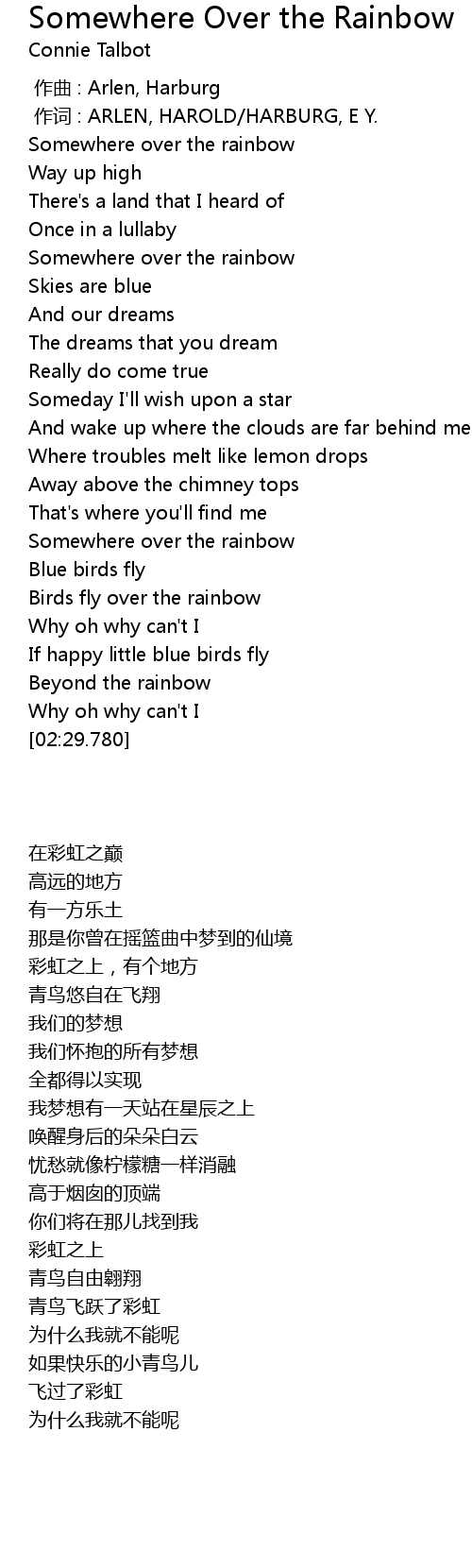 | [00:01.00] | 作词 : ARLEN, HAROLD/HARBURG, E Y. |