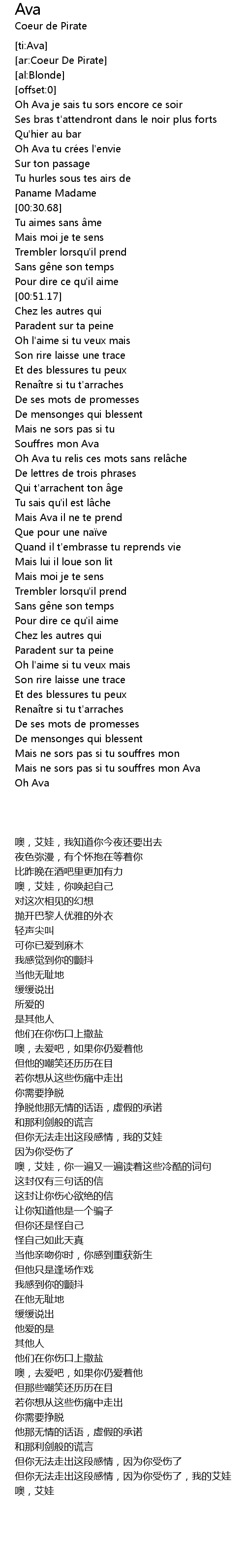 | [02:49.46] | Mais ne sors pas si tu souffres mon Ava |