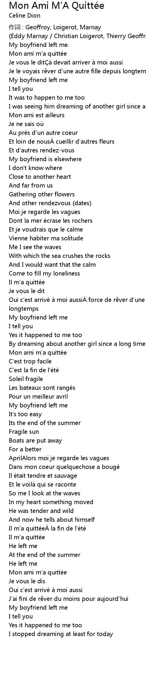 | Mon ami m' a quitté e | |