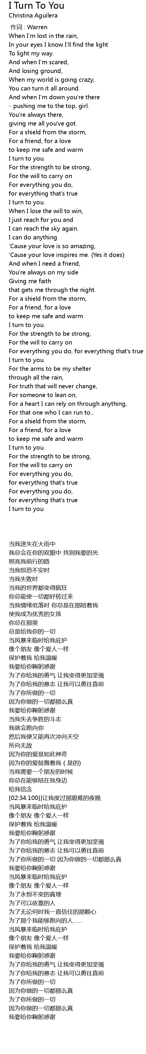 | [02:50.100] | I turn to you. |