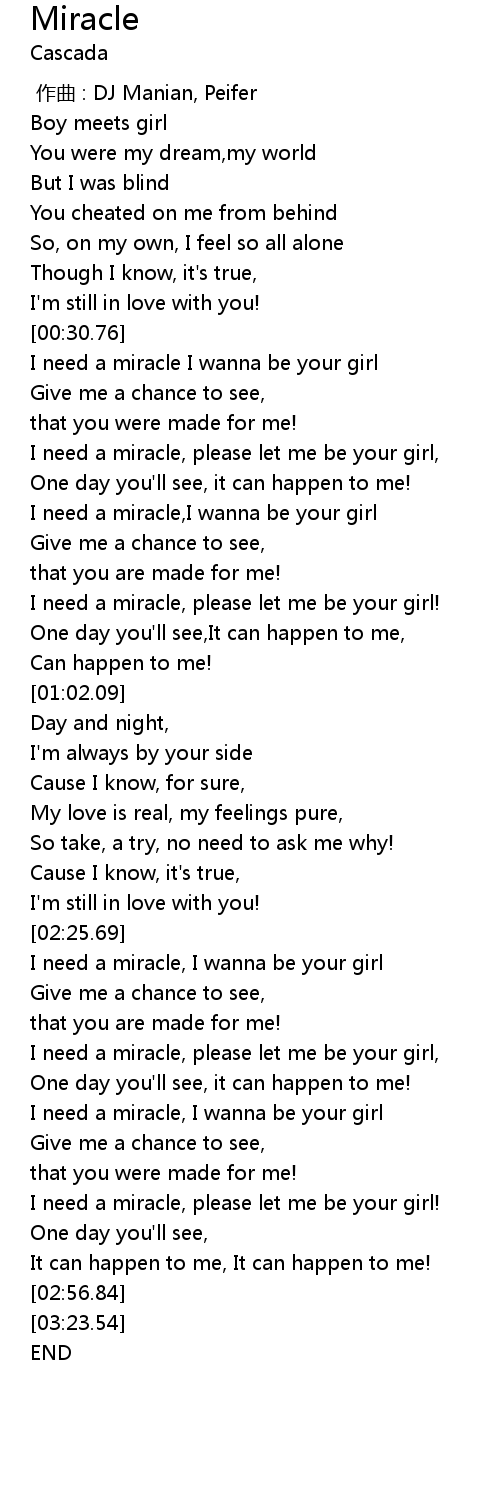 | [00:45.17] | I need a miracle,I wanna be your girl |