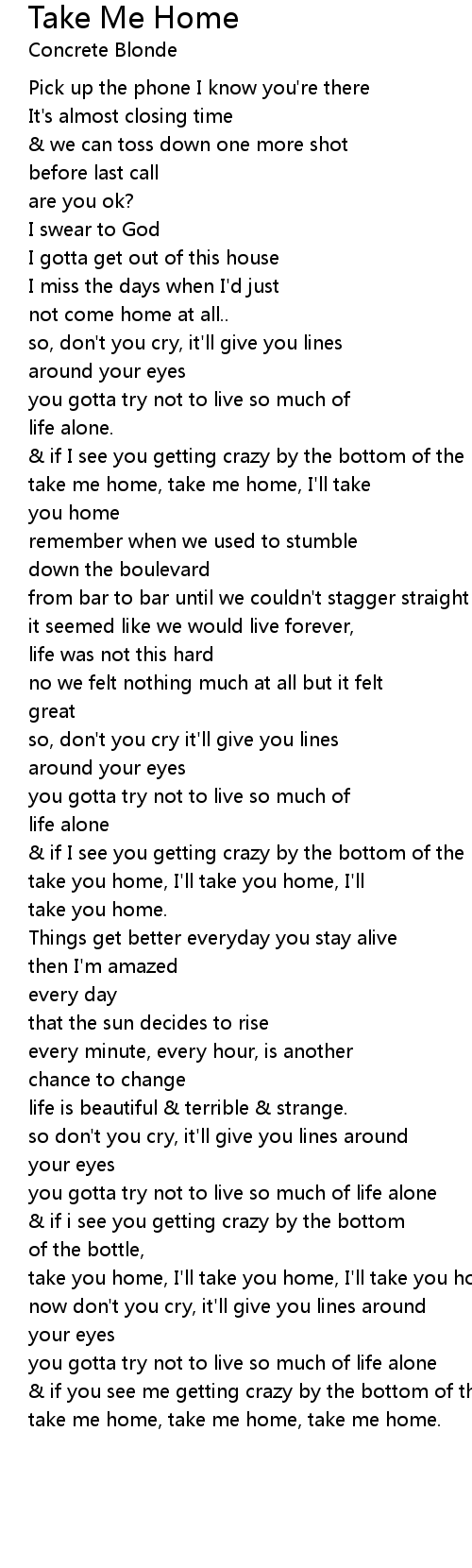 take you home, I'll take you home, I'll |