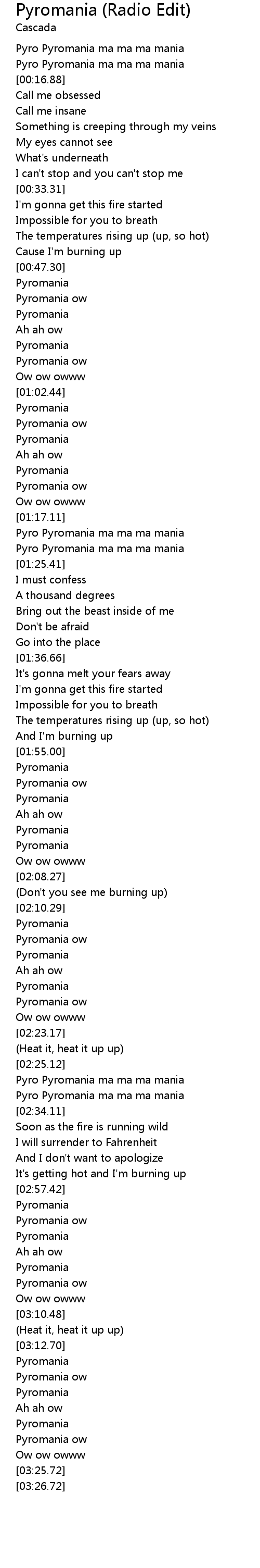 | [02:25.62] | Pyro Pyromania ma ma ma mania |