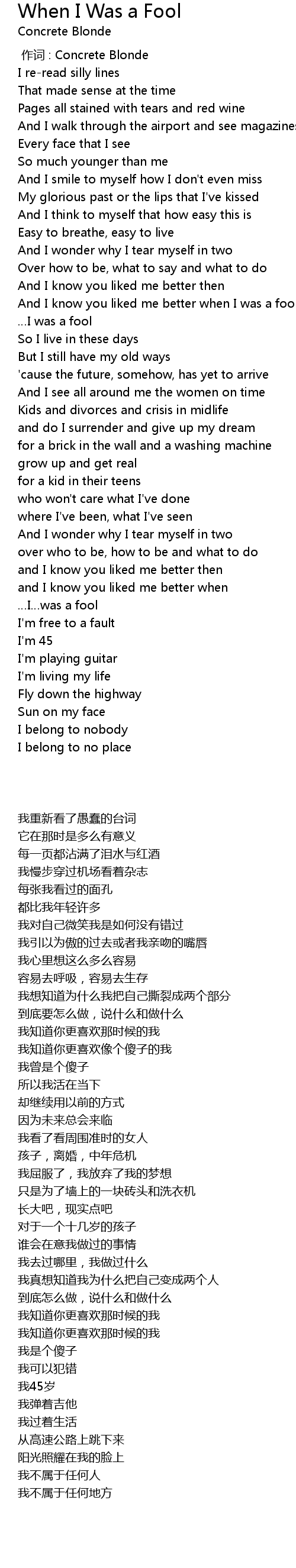 | [01:17.340] | And I know you liked me better when I was a fool |