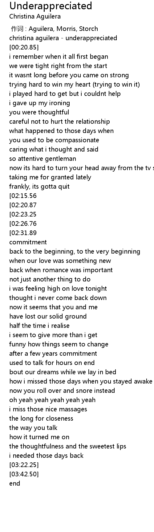 | [00:00.00] | christina aguilera - underappreciated |
