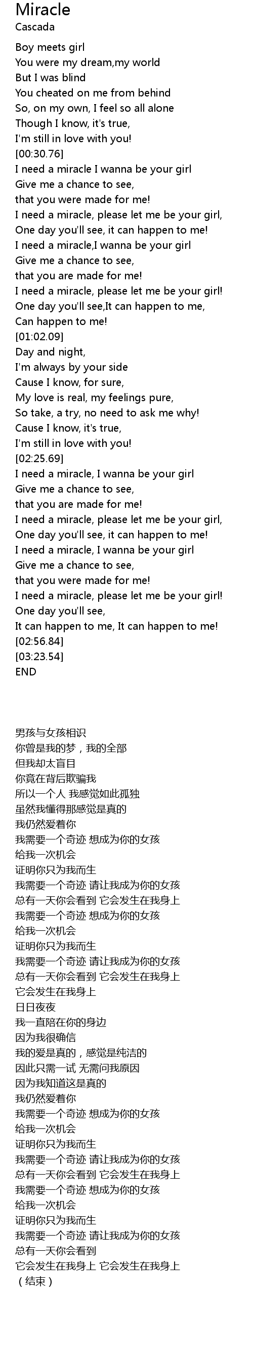 I need a miracle,I wanna be your girl |