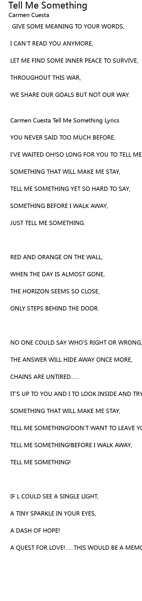 Carmen Cuesta Tell Me Something Lyrics |