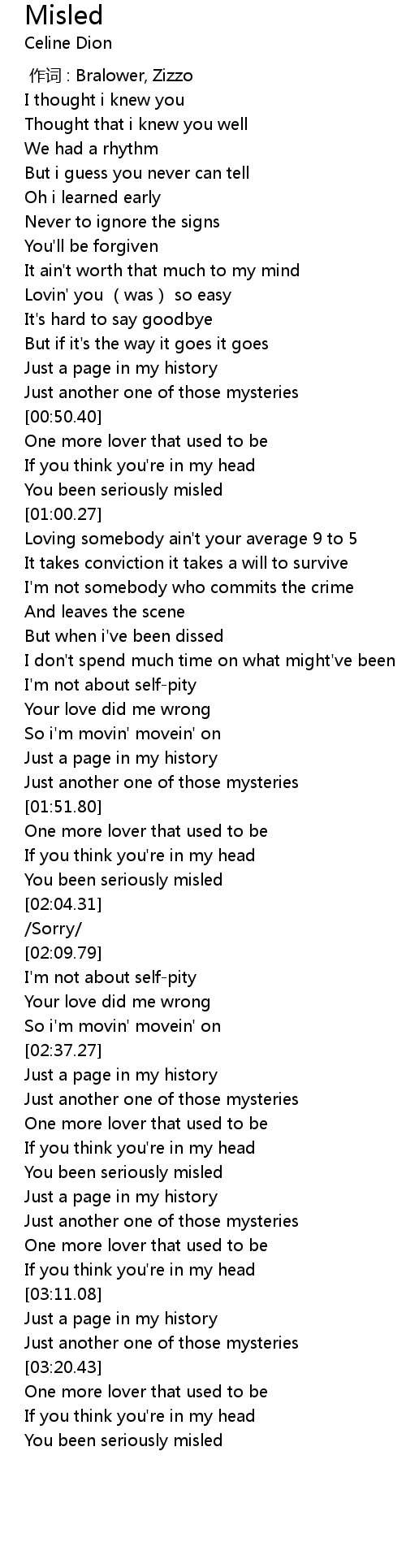 | [02:52.57] | You been seriously misled |
