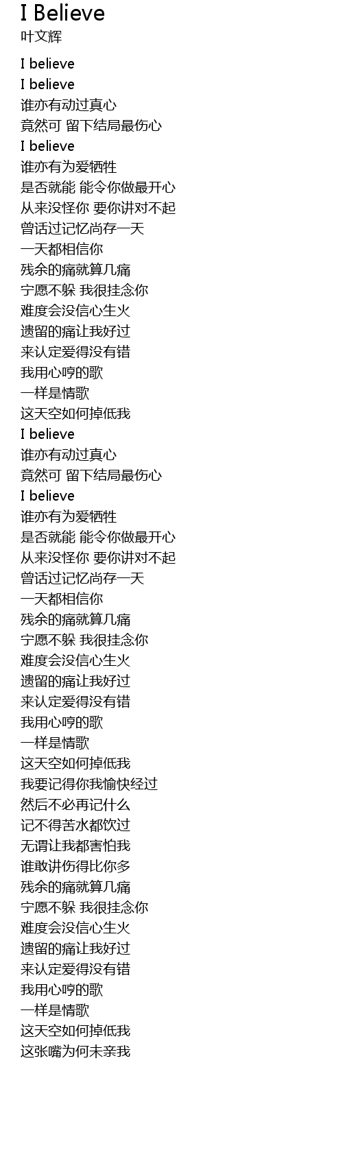 | [02:35.650] | yì tiān dōu xiāng xìn nǐ |