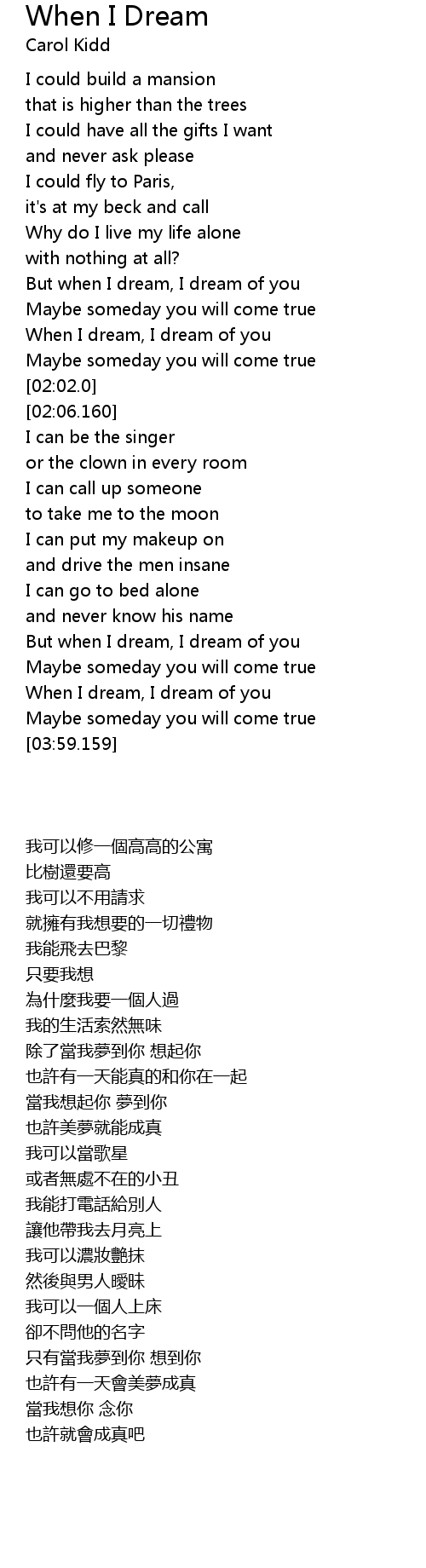 | [01:41.640] | When I dream, I dream of you |