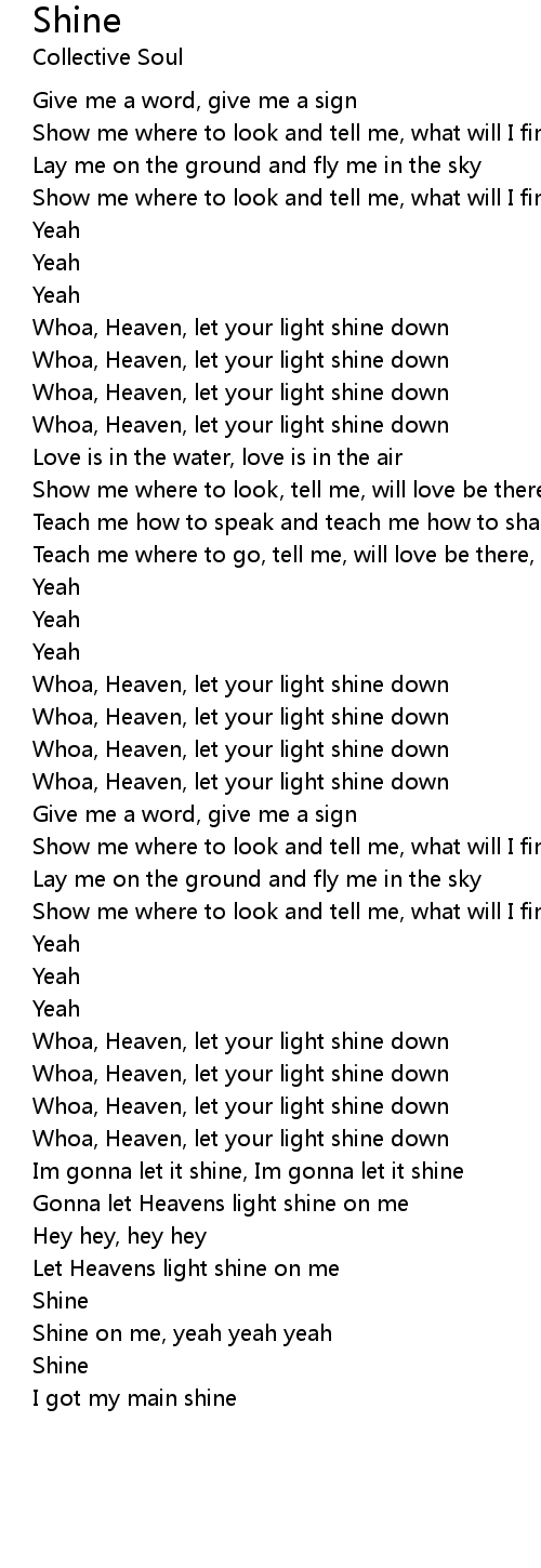 Whoa, Heaven, let your light shine down |