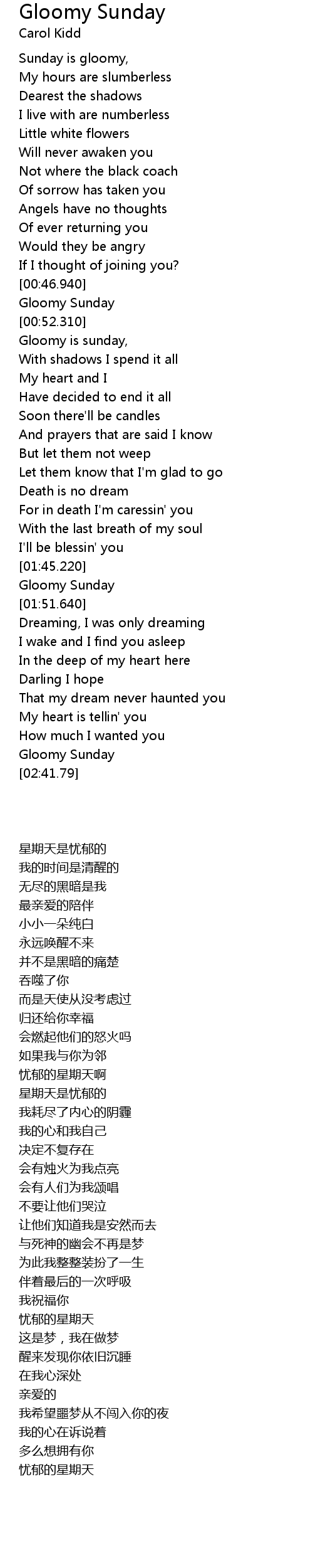 | [02:31.890] | Gloomy Sunday |
