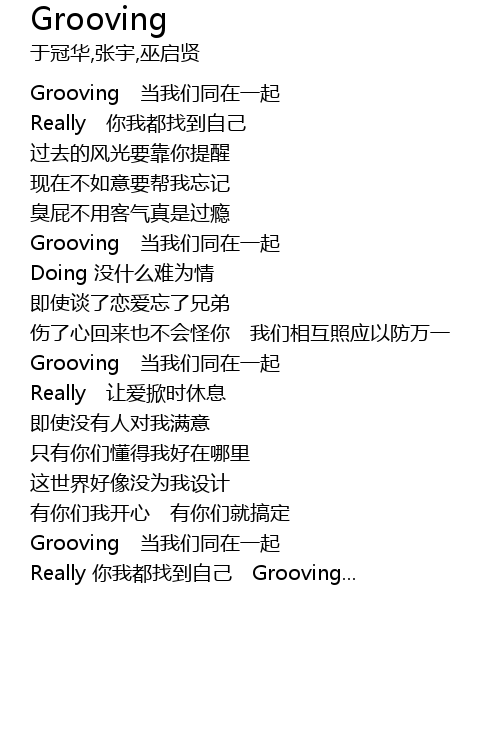 | [00:20.46] | Grooving dāng wǒ men tóng zài yì qǐ |