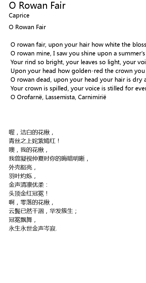 | O rowan fair, upon your hair how white the blossom lay! | |