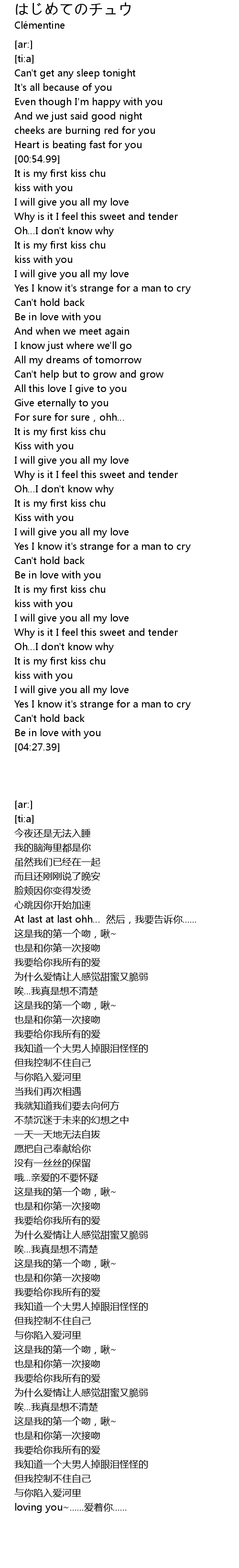 | [03:58.34] | 这是我的第一个吻,啾~ |
