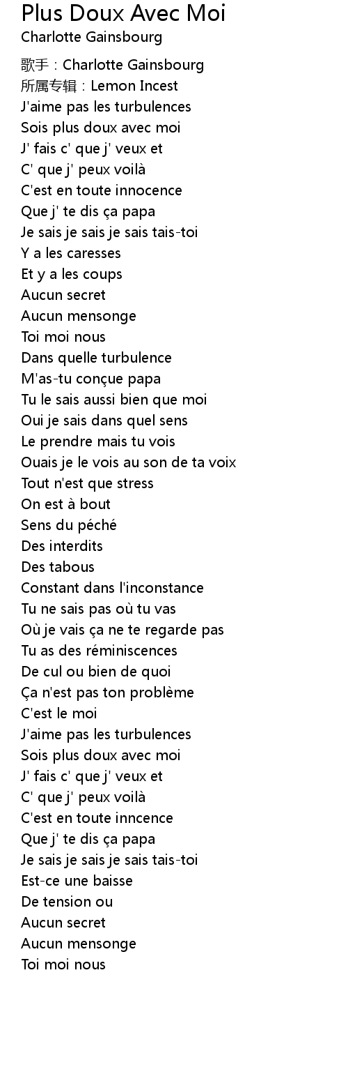 | 歌曲 | Plus Doux Avec Moi |