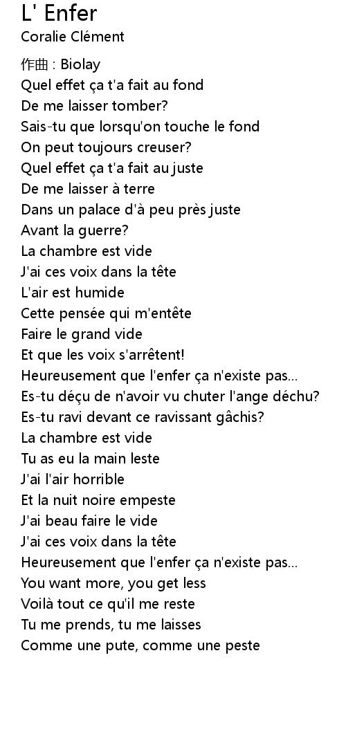 | 歌曲 | L' Enfer |