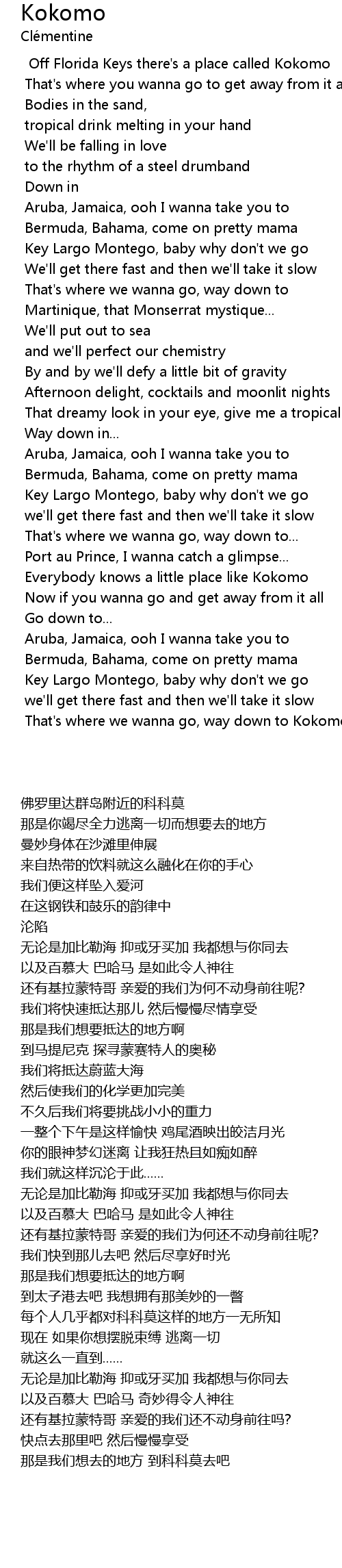 Off Florida Keys there's a place called Kokomo |